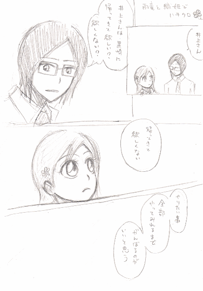 一護は今後もまた織姫放置して行方くらます事とかあるんじゃないかな…なんて思いながらザカザカ描いたラクガキです。