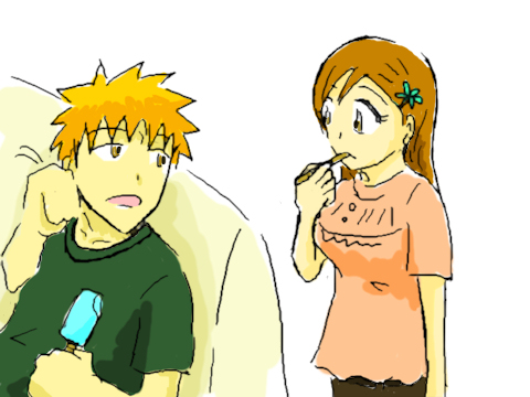 織姫は立ってるのに一護はだらけてソファに座ってるっていうのはあれじゃないか?(どれじゃないか?)