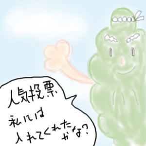 まさか10位以内はないでしょうけど、もし入ってたら笑う。どんなカラー扉絵になるんだという。人間(型)キャラに混じって得体の知れない物体がポツンと一つ。作成者・朽木隊長と並んでたら爆笑。