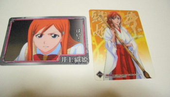 そんで右側の巫女さんカードと一護の紋付き袴カードのバックに同じような色(でも微妙に違う)が使ってあったってトコにちょこっと萌えといて良いですか?